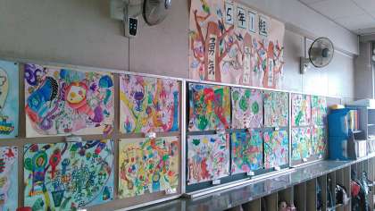 12月1日(木)5年生が制作した絵画作品です。子どもたちの自由な発想と色使いや塗り方など、指導の効果が表れています。期末個人懇談会のときにご覧いただけたらと思います。