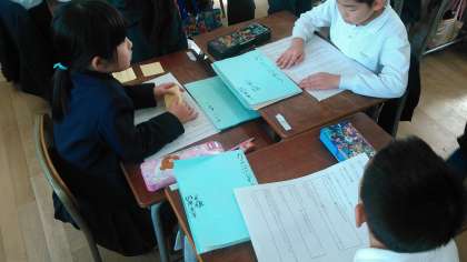 先週末に授業研究会を行いました。各班で話し合い活動をしました。