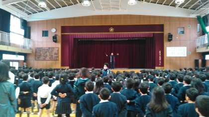子どもたちの発表が終わり、生活指導の話と全員で校歌を斉唱しました。3学期の始業式には元気に笑顔で登校してほしいと思います。