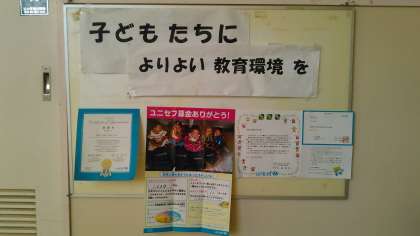 1月6日(金)校長室の前の掲示板にユニセフからの感謝状を掲示しました。今年は、子どもたちによりよい教育環境を整えていきます。佃西っ子だけではなく世界中の子どもたちにもよい教育環境ができればと願っています。