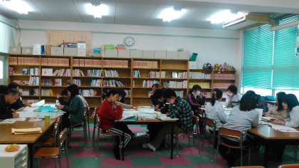 大学で指導されている講師先生からご講評いただく前に、教員が授業について分析します。活発な議論ができています。