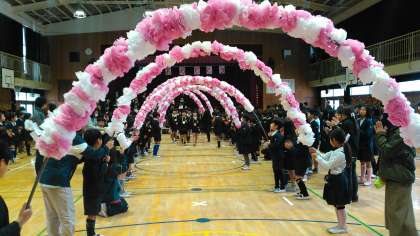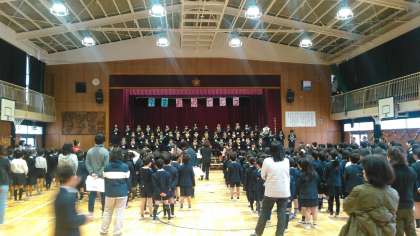 卒業生からの歌と演奏のプレゼントです。そして、在校生からのメッセージと卒業生からのお礼の言葉で締めくくりました。退場のときは、大きな拍手でおくられました。