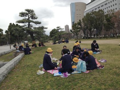 お弁当は、大阪城の近くの公園で食べました。寒い一日でしたが、高学年らしい社会見学ができました。
