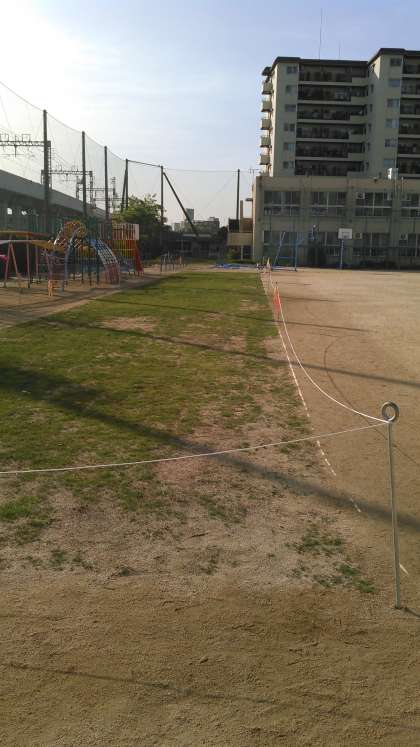 グリーンミーティングから2か月が経ちました。一部育っていない部分もありますが、柵をとって子どもたちが走ったり、寝転がったりして遊んだりできるようにしました。