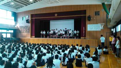 5月11日(木)今朝の児童集会で、前期児童会の任命式を行いました。新しく決まった児童会のメンバーに任命証を手渡した後、一人ずつスピーチをしました。