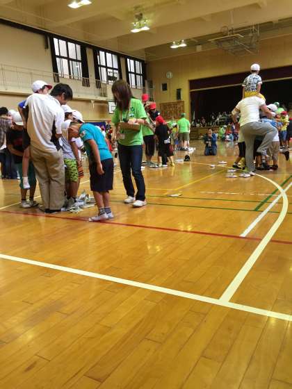 三校スポーツ大会の様子です。ドッジビーの試合に続き、青少年指導員の方々がゲームをして楽しませてくださいました。