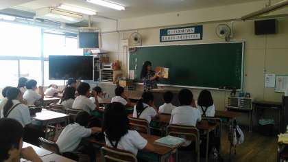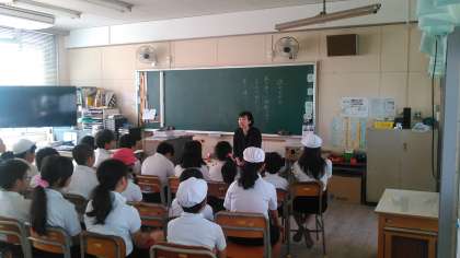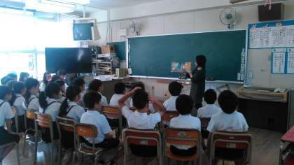西淀川図書館ボランティアのパタポンさんに来ていただき読み聞かせをしていただきました。ろうそくを使った読み聞かせは、本校の図書館補助員です。