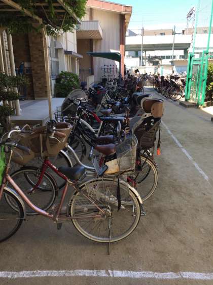 たてわりオリエンテーリングに、地域・保護者の方々にお越しいただき、ありがとうございます。自転車を綺麗に整列して並べていただいてます。ありがとうございます。