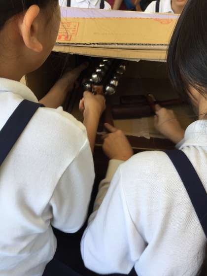 鳴っている音をよく聞いて、どんな楽器が鳴っているかを考えるお店です。難しかったです。