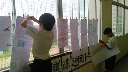 4階の廊下や掲示板に壁新聞やスケッチを見つけました。高学年らしい作品が鑑賞できます。機会がありましたらご覧ください。