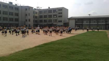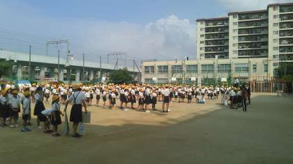 7月13日(木)今朝、運動場で児童集会(みんな遊び)をしました。先生もまじって楽しそうに遊んでいました。