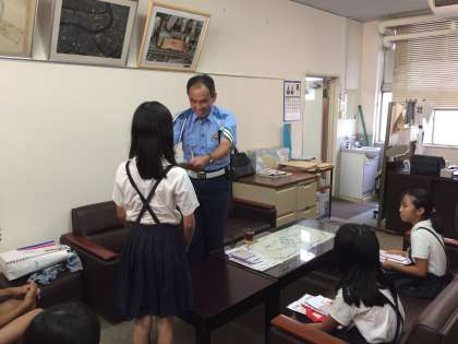 本日、校長室に自転車大会に出場した子ども達が集まって、西淀川警察署の方から表彰を受けました。記念品もいただいたようです。この自転車大会を通して、交通安全への気持ちが広まって、誰もが安心して暮らせるまちになってほしいです。