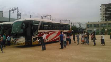 出発式が始まるころには、大勢の保護者の皆様が見送りに来られていました。朝早くからご苦労様でした。
