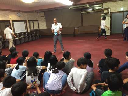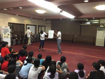 天候の都合で、予定を変更しました。キャンプファイヤーの代わりに、室内オリンピックがこれから始まります。