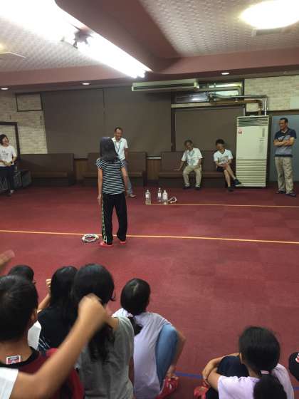 室内オリンピック、第2種目 輪投げが始まりました。これは見ての通りの競技です。