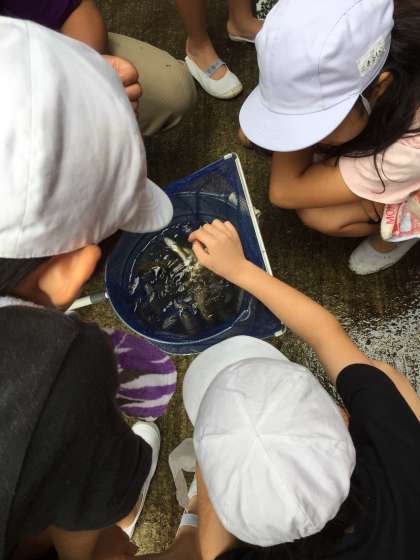 みんなで捕まえたアマゴたちです。ラストスパートです!