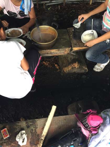 活動班ごとにつくったので、味もできるペースもそれぞれです。みんなでつくってみんなで食べるカレーライス&焼き魚は、間違いなく格別です。