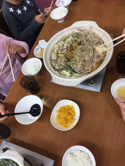 賑やかに林間最後の夕食が始まりました。美味しい美味しいとあちこちから聞こえます。