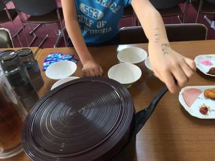 みんなのために、食事係が準備をテキパキと進めています。頼もしい姿です。