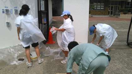 9月19日(火)運動会まであと5日となりました。子どもたちは、集中して練習しています。さて、職業体験の中学生が塗装作業しているところです。2日目は、運動会の練習を手伝ってくれました。お疲れ様でした。