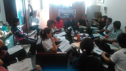 5年生の授業研究会ですが、「勉強したい!」というメンバーが集まり校長室が先生でいっぱいになりました。
