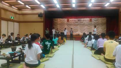 ステージの噴水があっという間に片づけられ、食事係がごちそうさまのあいさつをしました。自分たちの感想等も入れながら、進めていました。