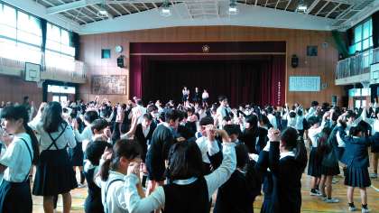 先週の木曜日に行った児童集会の様子です。イントロクイズで、曲名をあてるゲームです。