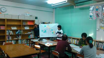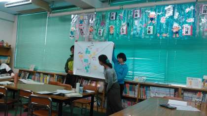 授業でよかったところ、改善すべき点を色別に貼っていきます。
