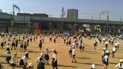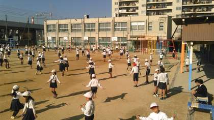 12月7日(木)運動場で子どもたちがなわとびをしています。音楽が終わっても各自の目標や課題をクリアするために頑張っています。