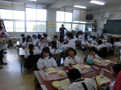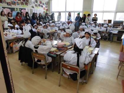 4月24日に新入生の給食参観がありました。保護者の皆様は、自分のお子さんの様子を熱心に参観されていました。