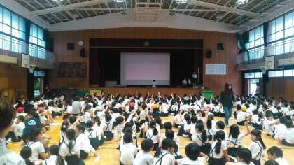 5月31日(木)朝の児童集会でクイズをしました。消しゴムや黒板を接写した画像が映写されました。非常に難しい問題でしたが、3択クイズのため何とか答えを選ぶことができました。普段見慣れているものでも、拡大すると何だかわからなくなるものですね。
