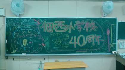 6月6日(水)今日は、学校の誕生日です。40回目の創立記念日を迎えました。6年生の各学級では、創立記念日を祝うメッセージを黒板に描いています。ハッピーバースデーを学級で歌って祝いました。