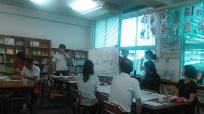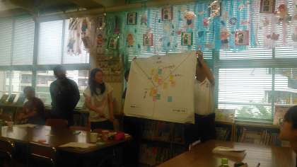 先日、午後の授業をカットして授業研究会を行いました。当該学級の授業を参観した後、図書室にて授業の反省会を行いました。