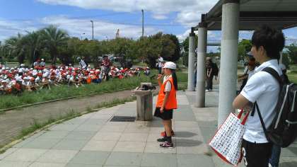 6月13日(水)佃西小学校創立以来初めての全校遠足に行ってきました。校内で朝会をする時よりも児童数が少なく感じました。児童会のメンバーが、スムーズに司会進行をしてくれました。