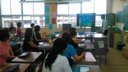 6月15日(金)児童が下校した後、教員のICT研修会を行いました。子どもたちの情報活用能力を向上させるため、まず教員が研修を受けているところです。