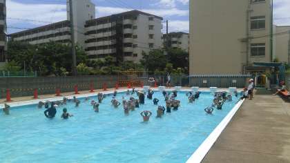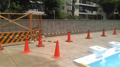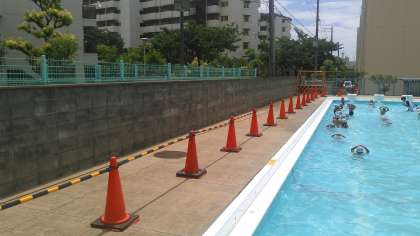 6月29日(金)今週の火曜日から始まった水泳ですが、ご覧のように制限区域を設けて実施しています。来週から2週間ほどで、頑丈なブロック塀になります。