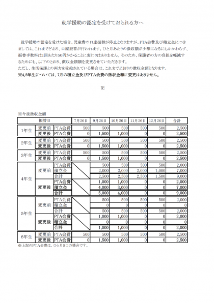 ただし、就学援助の認定となられた場合は、児童費振替がありません。