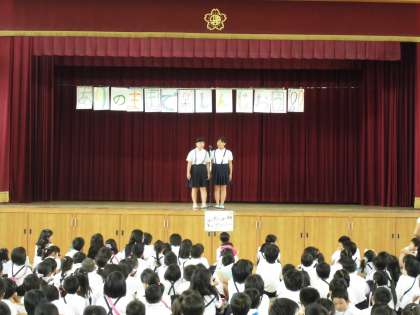 6月21日(土)に2回目の土曜授業を行いました。オープニングは、児童会のメンバーが開会のことば、注意事項などを発表しました。