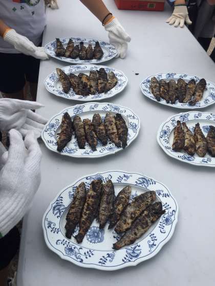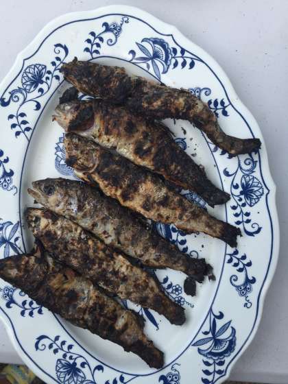 掴んだお魚が焼けました。美味しくいただきます。
