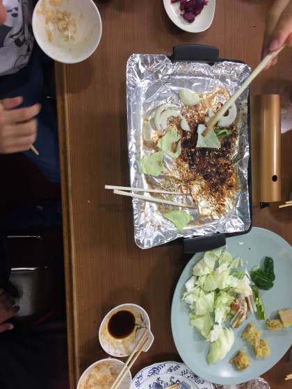 お肉がなくなってしまいました。野菜とご飯でいただきます。