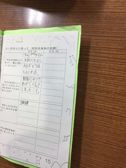 班ごとに今日の活動を振り返り、明日へつなげるために話し合っています。