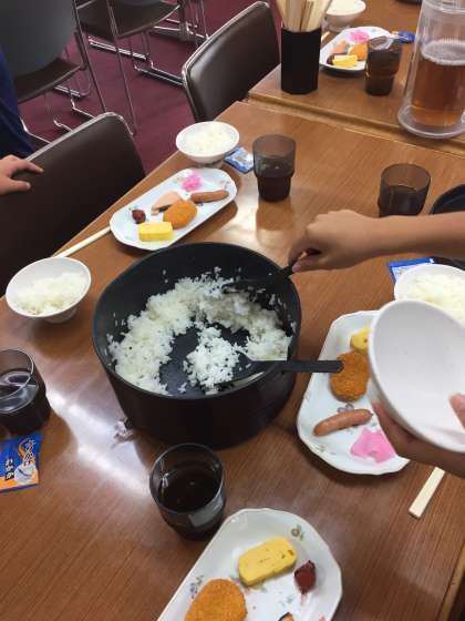 みんなのご飯をよそってあげています。