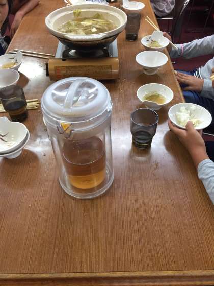 わいわい林間学習最後の夕食を楽しんでいます。を