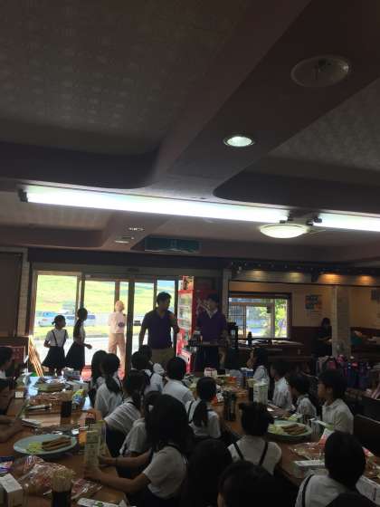 朝食の説明を受けています。カートンドックづくりについて、しっかり聞いて協力して作っていきます。