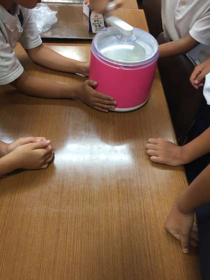 協力して混ぜています。
