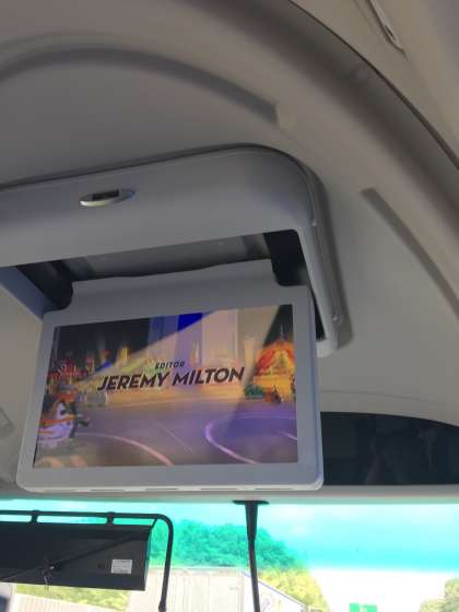 バスの中では、2号車は映画「プレーンズ」、1号車は映画「ズートピア」を観せていただいています。休みたい人は、ぐっすり寝ています。