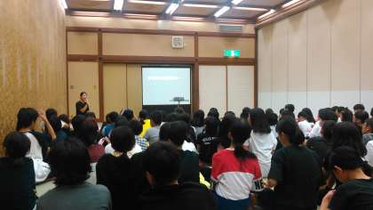 夕食後に教養セミナーを行いました。鳥羽水族館の飼育係りの方からアシカやアザラシの話を聞きました。
