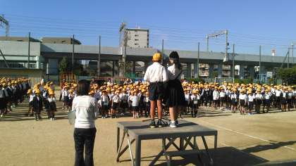 10月26日(金)今週の児童朝会で、あいさつと右側歩行について児童会の代表が連絡をしました。毎朝、当番の児童が大きな声で呼びかけてくれました。来週の朝会では、あいさつ名人の表彰を行う予定です。