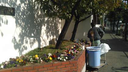 11月26日(月)明日は、本校の40周年式典を行います。管理作業員さんは、きれいな外壁でご来賓をお迎えできるように塗装作業をしています。