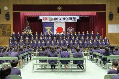 5・6年生は、開始の50分前から入場し最後まで式典に参加しました。1年生から4年生までは、後半の第2部で活躍してくれました。